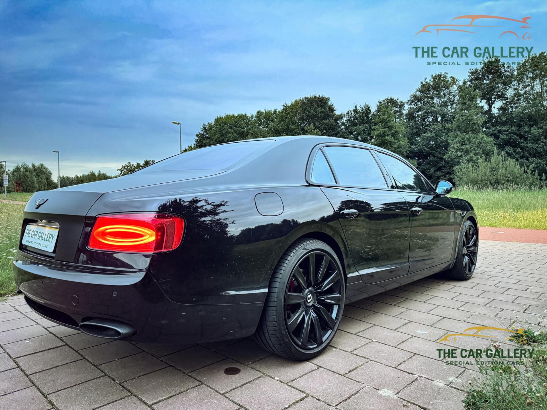 Deze Flying Spur is uitgevoerd in een zeldzame two-tone black on black edition: een combinatie van glossy en matzwart, compleet met zwarte grille en emblemen. Het resultaat is een tijdloze, gedurfde uitstraling die elegantie en sportiviteit uitstraalt.